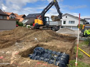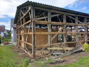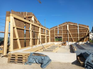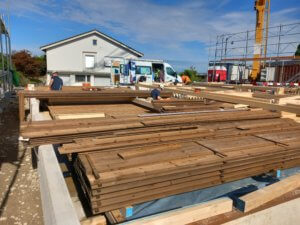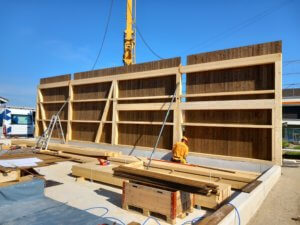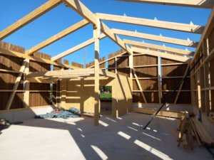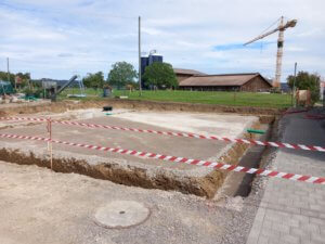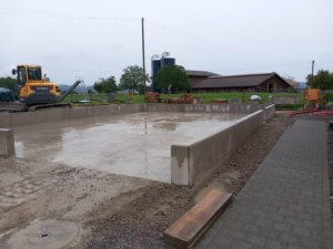 Wir erstellten selbst die Betonsockel, damit die Holzelemente aufgerichtet werden konnten.